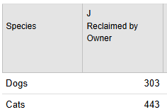 Compare the 443 cat and 303 dog “reclaims” with those from past years.
