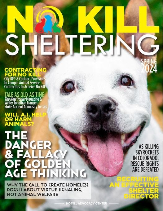 The Spring issue of No Kill Sheltering is available for subscribers or supporters of The No Kill Advocacy Center. As a thank you, it is also available to patron-level donors of my Substack page.