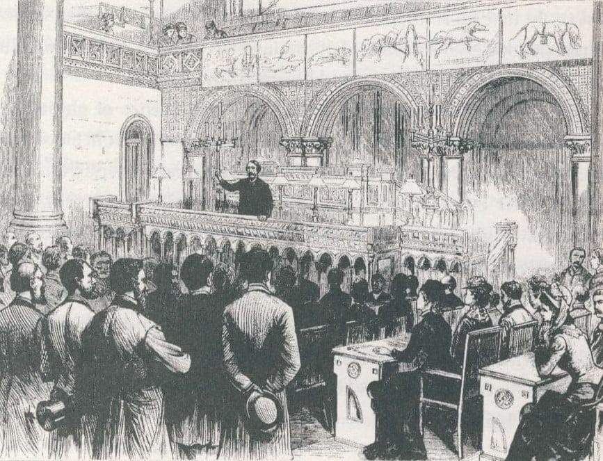 The driver of a cart laden with coal is whipping his horse. Passersby on the New York City street stop to gawk not so much at the weak, emaciated equine, but at the tall man, elegant in top hat and spats, who is explaining to the driver that it is now against the law to beat one’s animal. Thus, America first encounters ‘The Great Meddler.’