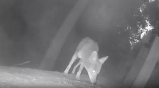 Since Oswald, my dog, died a few months earlier, I was dogless and unable to get a prescription, but once again, ChatGPT offered an alternative: it’s available in Australia without one. I ordered it online, and while waiting for the package to arrive, I fed the coyote what remained of Oswald’s food every night at the same time (just after dark), in the same place (on open space next to my house), so she stayed in the area.