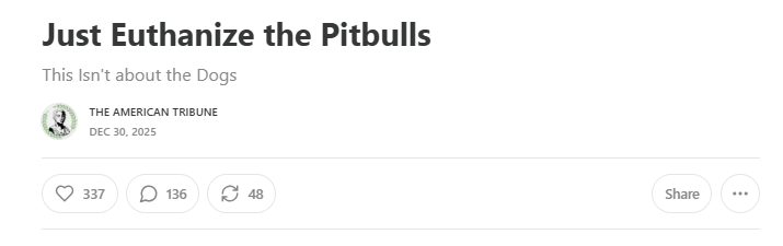 Moreover, a brief scan of Jordan’s page shows a tendency to race-baiting, and dogs labeled “Pit Bulls” often get caught in the crosshairs. I apologize for showing his tweet, but it underscores the point: